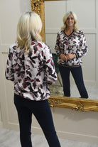 YEW Beige, Black & Wine Leaf Print Top With Sports Cuff- 3825 Gladis
