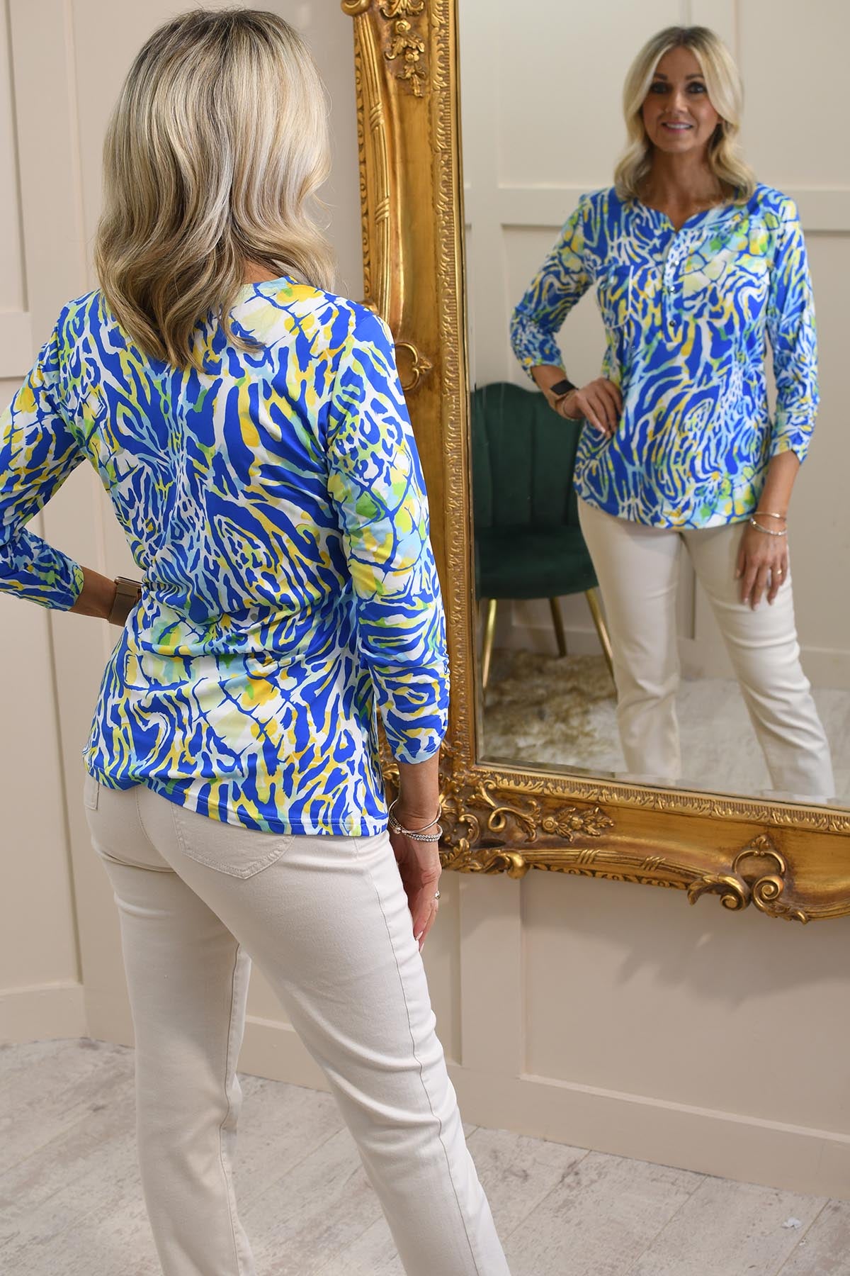 YEW Blue, Lemon & Lime Tropical Top With Pocket -2531 Juno