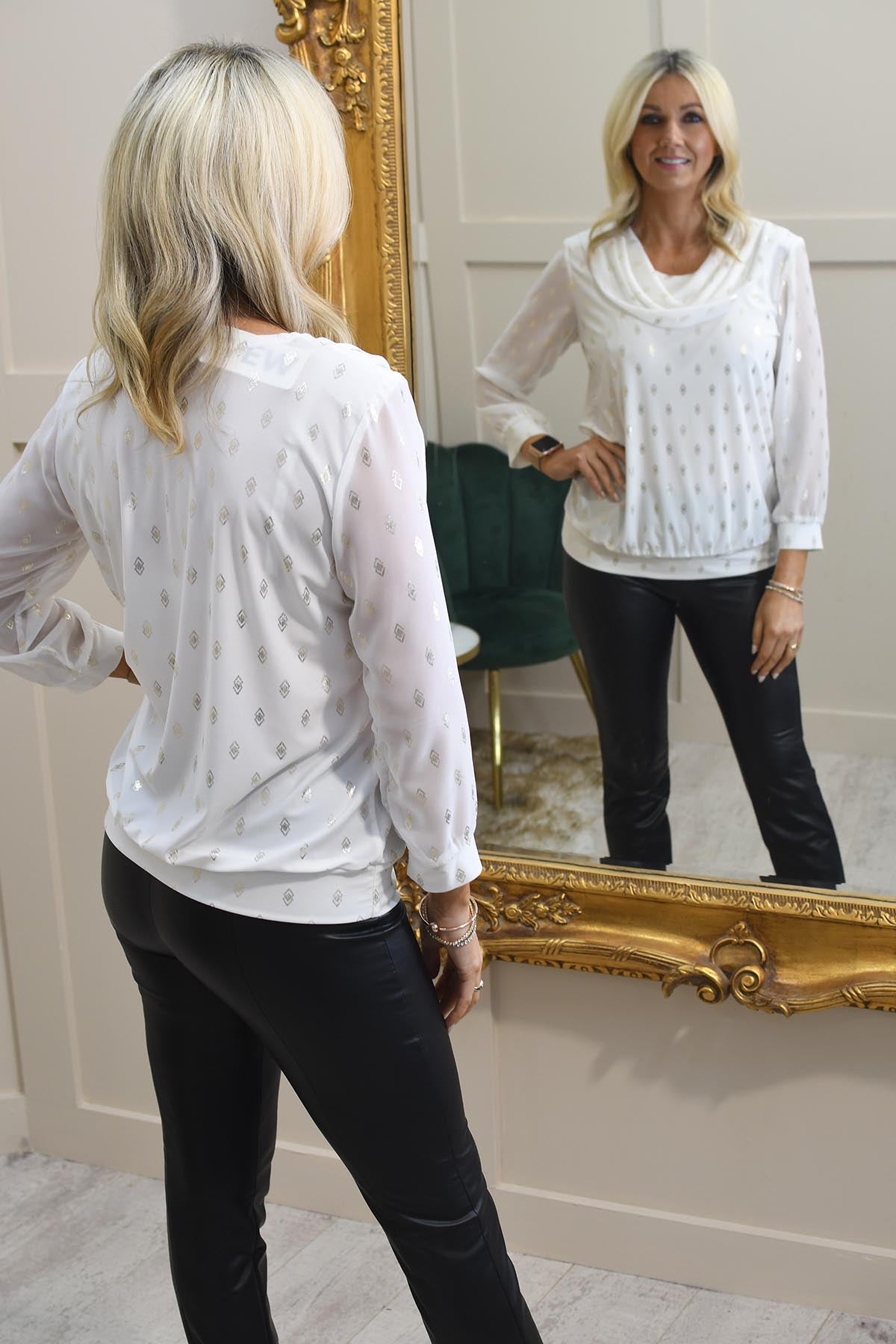 YEW Cream Cowl Neck Top With Champagne Detail- 2647 Foile