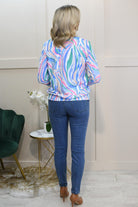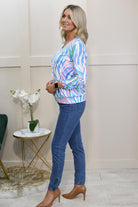 YEW Pastel Green, Blue & Pink Pattern V Neck Top-3936 Hallie