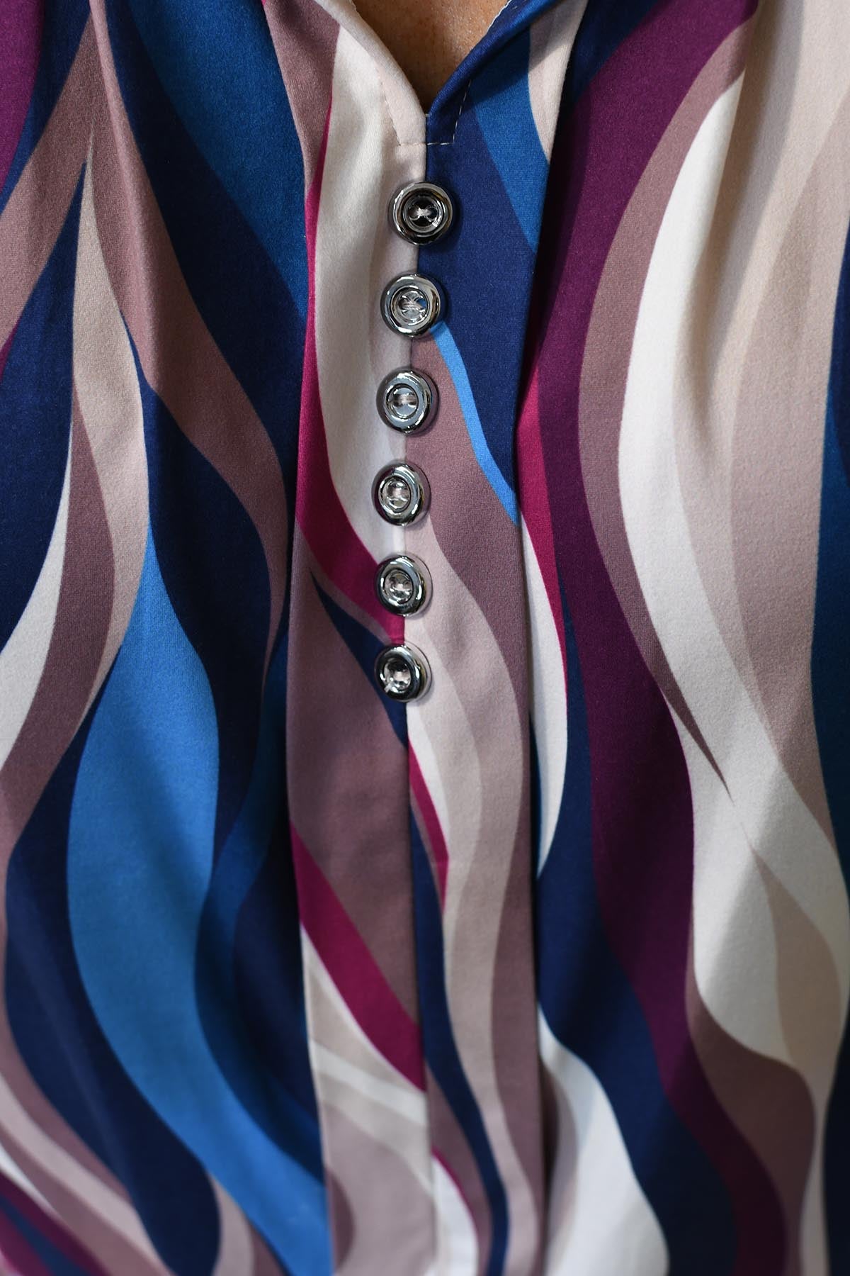YEW Teal, Taupe & Plum 1/4 Button Blouse- 3902 Tilly
