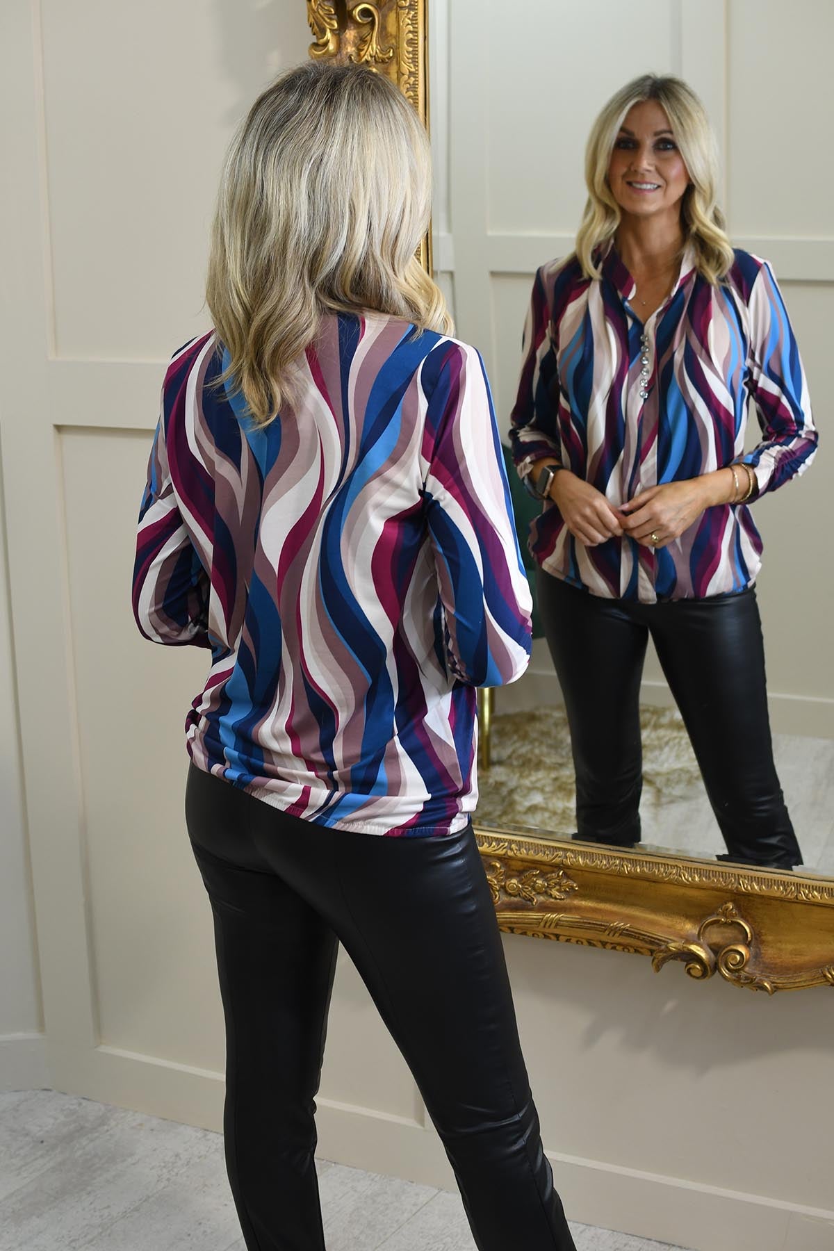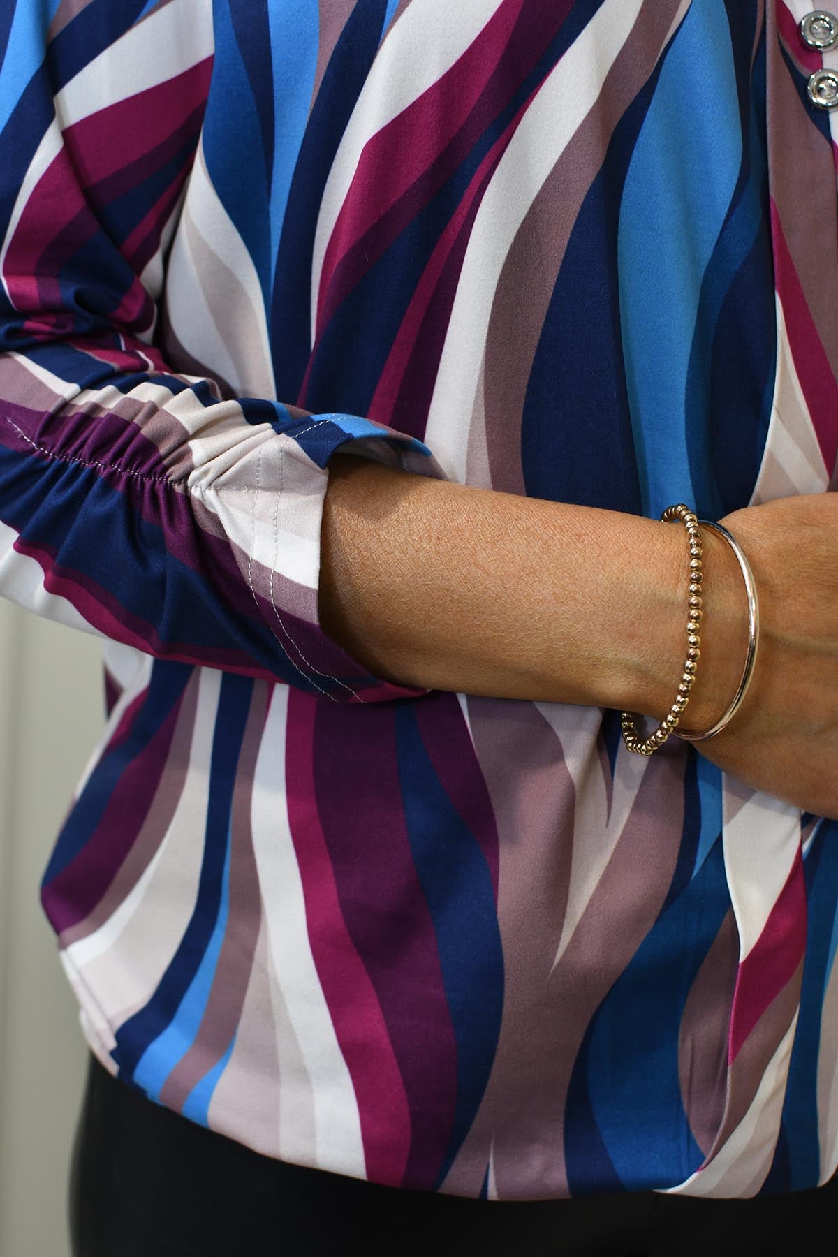 Refresh your wardrobe with the YEW Tilly 1/4 button blouse in a rich blend of teal, taupe, and plum tones. Crafted from a breathable, easy-care fabric blend of 70% viscose and 30% polyester, this blouse combines softness with lasting wear. The vibrant yet earthy color palette makes it a standout piece, while the 1/4 button front and relaxed fit offer versatile styling—from casual weekends to dressed-up dinners. Lightweight and elegant, it drapes beautifully for a flattering silhouette. A timeless top that brings colour, comfort, and effortless polish to any occasion.